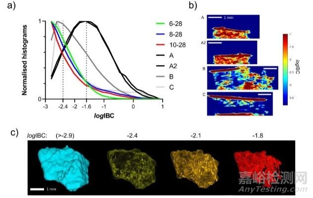 圖7 將3D-IBC圖像定量為體積直方圖,并識別新軟骨sonomarker強度。