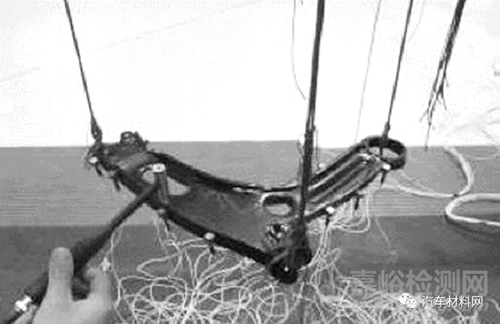 圖2 原鋼質(zhì)控制臂自由模態(tài)試驗(yàn)布置圖