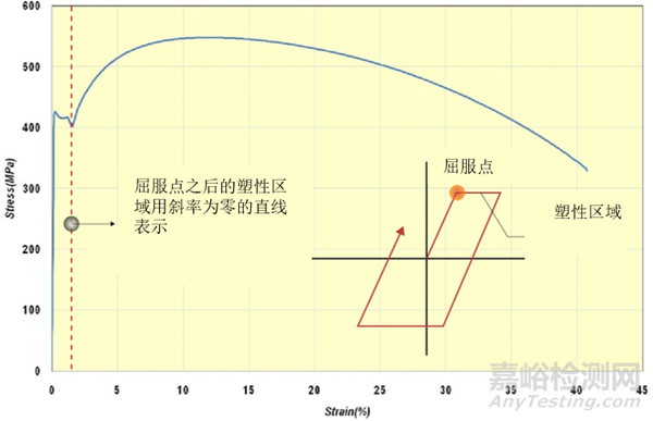 當(dāng)荷載較小時,卸載后,材料能夠恢復(fù)到原來的狀態(tài),此時材料處于彈性區(qū)域;當(dāng)荷載超過某一個值時,卸載后,材料不能夠恢復(fù)到原來的狀態(tài),材料處于塑性區(qū)域。彈性區(qū)域和塑性區(qū)域的轉(zhuǎn)換點就是屈服點,屈服點的應(yīng)力就是屈服應(yīng)力。在彈性區(qū)域,應(yīng)力應(yīng)變關(guān)系是線性的,但是在塑性區(qū)域,應(yīng)力應(yīng)變關(guān)系是非線性的。