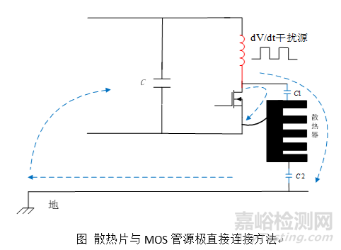 對于功率較小的電源,散熱片不與機箱連接,這時候可以將散熱片與MOS管的源極連接起來,同樣可以減小傳導發射。