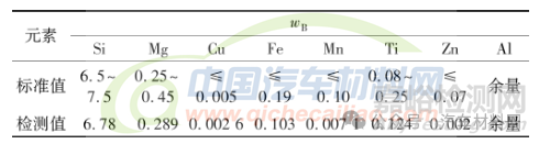 表1 A356.0鋁合金的化學成分