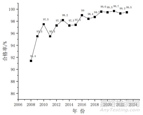 圖 1 國家藥品抽檢中成藥標(biāo)準(zhǔn)檢驗(yàn)整體合格率