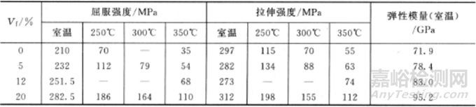 表3 多晶氧化鋁纖維增強(qiáng)鋁基復(fù)合材料的室溫及高溫性能