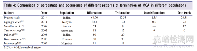 圖2 舉個例子,2019年印度研究者的大腦尸檢報告(n=170,MCA=340條)中提到的,不同研究的大腦中動脈(MCA)分類的比較,同時還測得MCA的平均長度和直徑分別為25.5-27.8mm和3mm。雖然是不同的人種,但也很明顯能看出,如此時將可調彎段設計為180度,長度超過20mm都是不太合適的