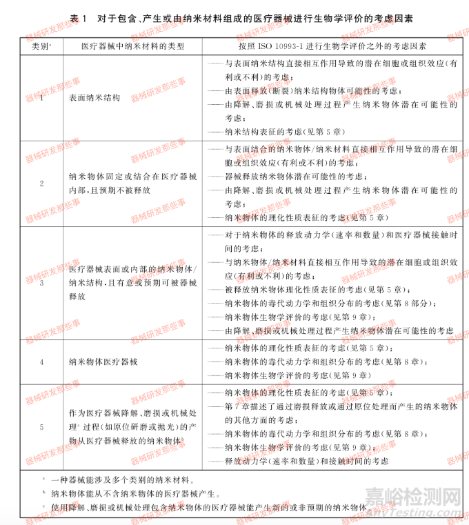 在技術(shù)評估時,需考慮納米材料在醫(yī)療器械中的濃度、預(yù)期用途、接觸途徑、釋放速率和模式以及對患者接觸情況的估計。GB/Z16886.22中已明確了由納米材料組成的醫(yī)療器械進(jìn)行生物學(xué)評價的考慮因素。我們將醫(yī)療器械中的納米材料分為5類。然而,我們需要指出一種器械可能涉及多個類別的納米材料,例如除表面結(jié)構(gòu)外,還包含器械表面或內(nèi)部的納米物體,納米結(jié)構(gòu)有意義或者預(yù)期可能被器械釋放。納米物體可以從不含納米物體的醫(yī)療器械中產(chǎn)生。對于使用降解磨損或處理包含納米物體的醫(yī)療器械,我們在評價生物學(xué)時需要對其產(chǎn)生額外的新的非預(yù)期納米物體。