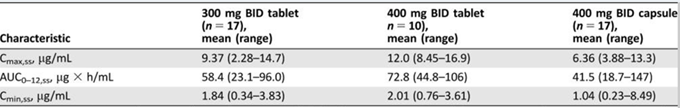 表1.奧拉帕尼膠囊和片劑在劑量擴展階段的藥代動力學和生物利用度的比較(參考文獻5)