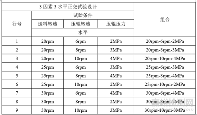 對(duì)干法制粒工藝影響最大的關(guān)鍵工藝參數(shù)最終確定為送料轉(zhuǎn)速、壓輥轉(zhuǎn)速及壓輥壓力,可采用科學(xué)的正交試驗(yàn)設(shè)計(jì),通過(guò)考察工藝的順暢性,溶出曲線的擬合性,從而篩選出合適的送料轉(zhuǎn)速、壓輥轉(zhuǎn)速及壓輥壓力。