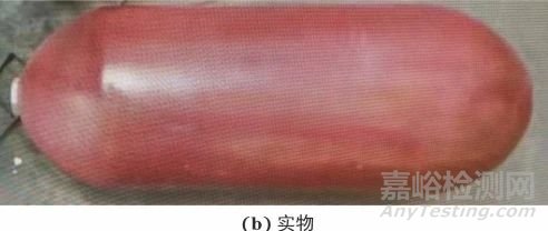 針對叉車儲氫鋼瓶在線自動超聲檢測技術進行分析,檢測對象為ф340 mm×16.4 mm沖拔式冷旋壓儲氫鋼瓶,其結構尺寸與實物如圖1所示。