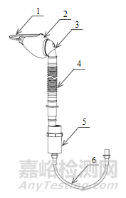 1、固定帶2、氣切面罩3、接口4、波紋管5、霧化杯6、連接管