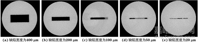 圖14 不同寬度的裂紋缺陷的金相(上面)和CT檢測(cè)(下面)結(jié)果對(duì)比