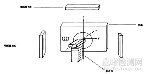 固定式激光定位設備:固定式激光定位設備主要安裝在放射治療室,在X、Y、Z方位的激光燈可分別投射出相互垂直共面的矢狀面、冠狀面和橫斷面激光線,各線的交點與放射治療設備的等中心點完全重合,進行患者擺位時,在患者體表兩側及上表面顯示出“十”字標記點,用于放射治療時對患者病灶進行定位。