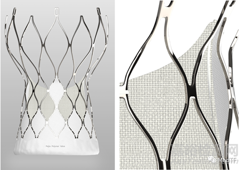 4. 大網格設計:Polymer TAVR系統的支架設計采用大網格設計,可以增加瓣膜支架的柔韌性和適應性,大網孔設計使支架能更有效地適應不同解剖結構和病變嚴重程度的主動脈瓣,確保安全貼合并降低瓣周漏等并發癥的風險,可提高手術成功率。大網孔的設計還可以降低冠狀動脈阻塞的風險,并有助于再次PCI時的冠脈通路。瓣膜支架設計中的較大網孔還有助于促進人工瓣膜的最佳血流,降低支架血栓形成的風險并提高整體瓣膜性能。較大的網孔設計可能使介入醫生在術中更易于回收和如有必要時重定位人工瓣膜(如有必要)。