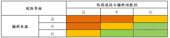 因此,本文按照給藥途徑將藥用輔料的風(fēng)險(xiǎn)等級(jí)劃分為高風(fēng)險(xiǎn)、中風(fēng)險(xiǎn)和低風(fēng)險(xiǎn)3類: