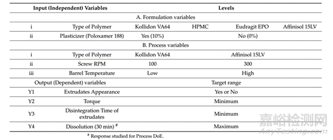 通過HME技術生產的ASD的工藝優化需要了解CQA、CMA、CPP、風險評估工具和實驗設計。從這些QbD要素中獲得的知識有助于確保產品質量的一致性。選擇并實施適當的實驗設計(DoE)方法,以篩選并優化處方和工藝變量仍然是一個重大挑戰。下面將通過兩個文獻中的具體實例來學習。