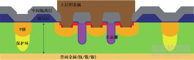 在對溝槽型MOSFET產品的實際測試中,觀察到最小擊穿電壓達到60V,并利用I-V測試和EMMI技術精確定位了漏電失效點。FIB-SEM的形貌分析進一步揭示了溝槽結構的不均勻性,包括多晶硅層的不均勻分布和上部區域的凹槽現象。文章深入探討了可能的工藝問題,指出了LPCVD多晶硅沉積過程中的異常、過量刻蝕的選擇性和速率差異可能是導致失效的關鍵因素。