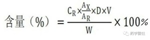 固體制劑含量相當(dāng)于標(biāo)示量的百分?jǐn)?shù),計算公式如下: