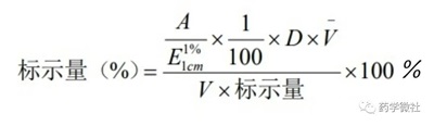 (2)吸收系數(shù)法按各品種項下方法配制供試品溶液,在規(guī)定的波長處測定其吸光度,再以該品種在規(guī)定條件下的百分吸收系數(shù)(E),按下式計算供試品的含量