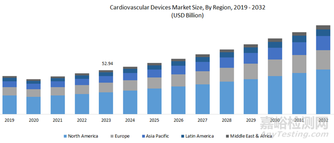 全球心血管設(shè)備市場(chǎng)在2023年的價(jià)值為529.4億美元,并預(yù)計(jì)在預(yù)測(cè)期內(nèi)將以8.1%的復(fù)合年增長率增長。