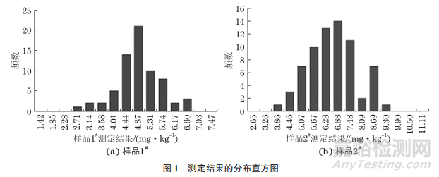 根據 GB/T 28043— 2019《利用實驗室間比對進行能力驗證的統計方法》對能力驗證測定結果統計分析的要求,本工作對實驗室測定結果進行匯總、統計,繪制數據分布直方圖,見圖1。