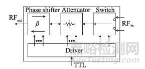 其中一款GaAs 0.25μm pHEMT E/D工藝的數(shù)字移相衰減多功能芯片的失效情況進(jìn)行了深入分析,研究了失效機(jī)理,并提出了相應(yīng)的工藝制程改進(jìn)方案。該芯片集成了六位數(shù)字移相通道、四位衰減通道、吸收式單雙擲開關(guān)及串口數(shù)字驅(qū)動電路,采用TTL控制信號,通過背孔方式接地。在使用過程中,該芯片出現(xiàn)了90°移相通道無法恢復(fù)的故障,即90°態(tài)翻轉(zhuǎn)后不恢復(fù),始終處于開啟狀態(tài)。