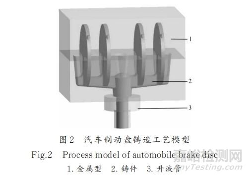 基于分體通風(fēng)式新能源汽車制動盤的研發(fā)過程經(jīng)驗(yàn)[8],經(jīng)計算確認(rèn)了設(shè)計開發(fā)的新能源汽車的分體式實(shí)心制動盤盤體,并通過復(fù)合材料裂紋擴(kuò)展分析[9]確認(rèn)合適的盤體厚度為12mm,磨耗限定為2mm(見圖1),確保實(shí)際服役過程中盤體在連續(xù)急剎后的穩(wěn)定性及安全性。基于SiCp/Al復(fù)合材料的化學(xué)成分,添加形成ProCAST材料組[10],最終經(jīng)真空吸鑄確認(rèn)汽車制動盤的成形穩(wěn)定性。