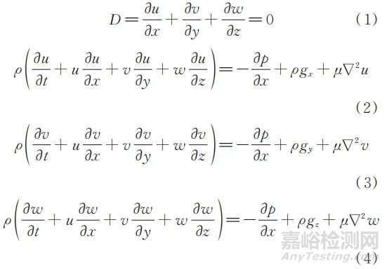 式中,D為3個方向的速度矢量和;u、v、w分別為流體在x、y、z方向的速度分量;p為單位密度的壓力;gx、gy、gz為x、y、z方向的重力加速度;t為時間;ρ為合金液密度;μ為動力黏度;∇2為拉普拉斯算子。