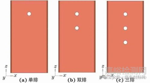 Fig.8 Positions of induced holes on single face of aluminum alloy square thin-walled beam: (a) single row;(b) double row and (c) triple row