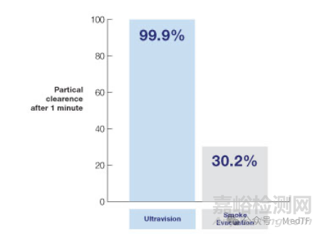 根據研究顯示:Ultravision可以在一分鐘內清除腹部內 99.9% 的手術煙霧和薄霧。減少手術煙霧有效性是煙霧過濾器的23倍。