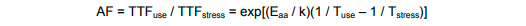 AF=exp[(Eaa/k)(1/Tuse–1/Tretention,stress)]
