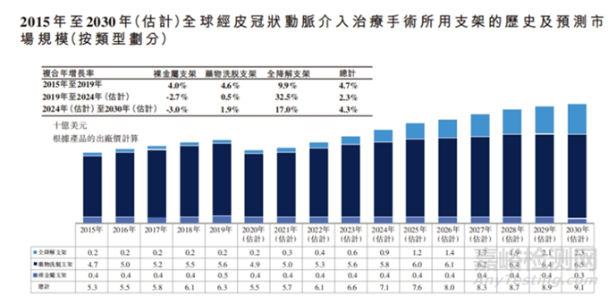 根據弗若斯特沙利文預測,2021年全球全降解支架市場規模達3億美元,到2025年增長至12億美元,2030年達到23億美元。在未來,隨著越來越多的全降解支架產品獲批上市,同時產品持續優化升級,全降解支架會擁有明顯的替代優勢。弗若斯特沙利文預測,到 2030 年,中國使用的全降解支架數量將增長至 128.9 萬個,占全部支架數量的 30%。