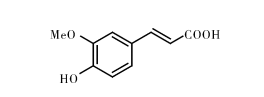 阿魏酸是一種酚類化合物,為肉桂酸的衍生物,因首次從植物阿魏中分離出而得名,其廣泛分布于植物界,尤其是傘型科,毛茛科和禾本科,如當歸、川芎、升麻、天竺葵和蘆根中。阿魏酸游離態很少見,通常與木質素和多糖交聯形成部分植物的細胞壁,結構為4-羥基-3-甲氧基肉桂酸,如下圖所示。