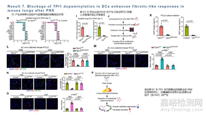 PNX后阻斷ECs中的TPI1多巴胺化增強小鼠肺纖維化樣反應