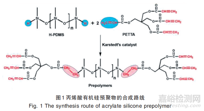 Li 等通過季戊四醇四丙烯酸酯(PETTA)和氫化 物封端聚二甲基硅氧烷(H-PDMS)的一步氫化硅烷 化,獲得了多功能丙烯酸有機硅預聚物(Prepolymers)。 這些預聚物在聚硅氧烷鏈的兩端各含有3個丙烯酸酯基團,可以參與 UV 固化過程,因此具有很高的 UV 固化活性,加入少量光引發劑后,預聚物可以快速固化。 只用樹脂本身制備的薄膜便可耐受接近 400 °C 的高 溫,在耐高溫領域有不錯的應用潛力。