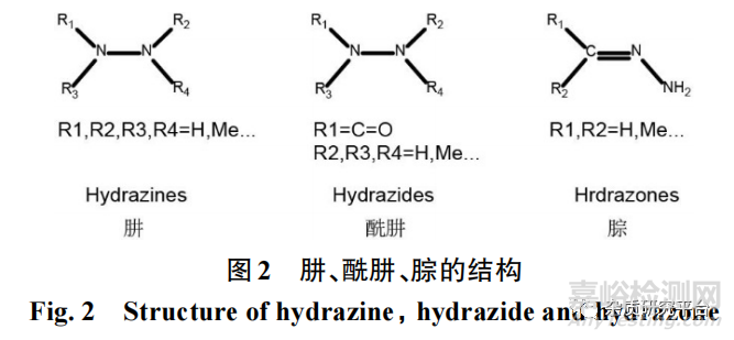 肼、酰肼和腙(結構見圖2)具有基因毒性警示結構,是一種已知的GTI,具有潛在的致癌性。