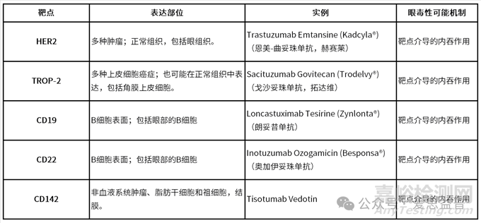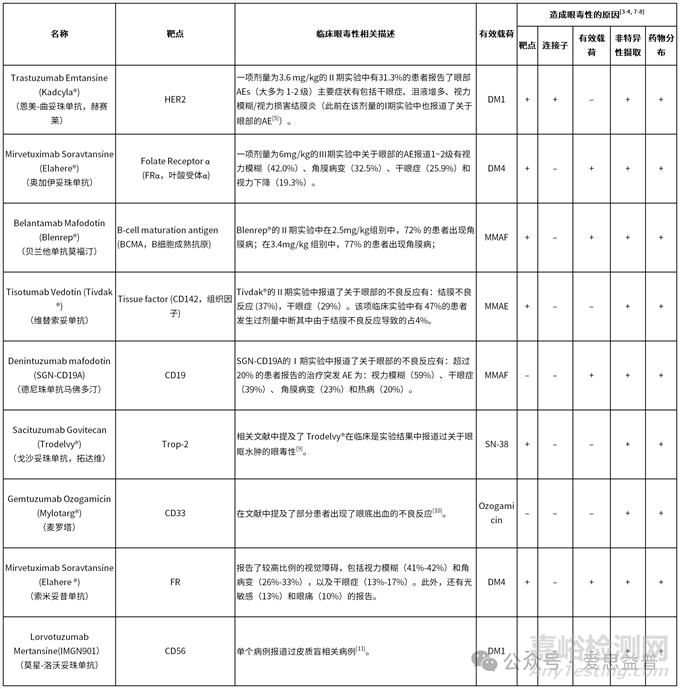 1.現(xiàn)有文獻(xiàn)存在眼毒性的ADC藥物及其可能的原因分析