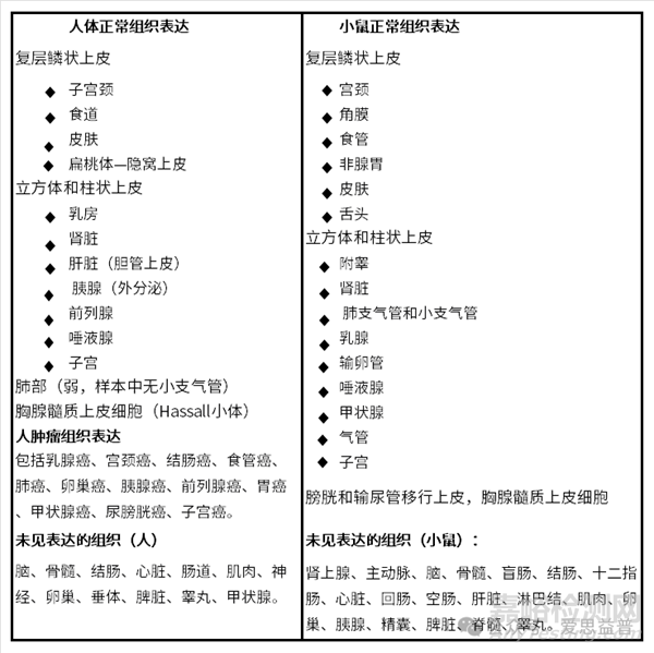 表4. Trop2在人和小鼠正常和腫瘤組織的蛋白表達(dá)