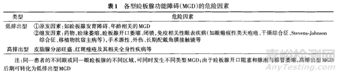 引發(fā)干眼的因素多而復雜。研究表明:瞼板腺功能障礙(MGD)是導致干眼的主要原因之一。MGD 是一組慢性、彌漫性的瞼板腺異常,以瞼板腺導管的阻塞或瞼板腺分泌物異常為特征,是蒸發(fā)過強型干眼最常見的原因,主要表現(xiàn)為眼干澀、眼痛、視物模糊、眼部分泌物增多等。