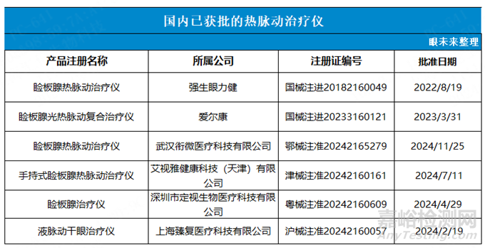 2022年發(fā)布的一份專家共識中提及:強脈沖光治療干眼癥,若操作不當,可能導致皮膚局部結(jié)痂、水腫、色素沉著等不良反應。所以在監(jiān)管準入方面,當前強脈沖光治療設(shè)備按第三類醫(yī)療器械管理,而熱脈動治療儀只需獲得二類醫(yī)療器械癥就可上市。