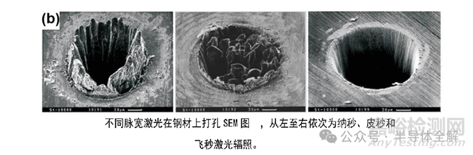 1996年Chichkov等人分別使用納秒、皮秒以及飛秒激光在厚度為100微米的鋼材上進行打孔。結果表明飛秒激光制備的孔熱影響區最小,制備結構表面質量最高。