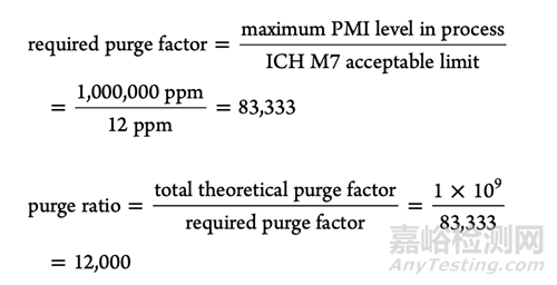 使用12ppm的TTC,需要83,333的清除系數,這與清除計算一起,對應于12,000的清除率;遠遠超過了建議的≥1000,以證明ICH M7選項4控制策略是合理的,而無需進一步分析數據。除了現有的批次數據支持在API中測量的水平始終低于5ppm外,不再需要對藥物物質進行28次常規測試。