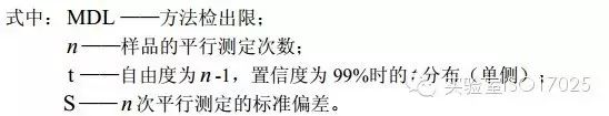 品濃度低于計算出的方法檢出限,則都需要調整樣品濃度重新進行測定。在進行重新測定后,將前一批測定的方差(即S2)與本批測定的方差相比較,較大者記為Sa2,較小者計為為Sb2 若Sa2/ Sb2>3.05,則將本批測定的方差標記為前一批測定的方差,再次調整樣品濃度重新測定。若Sa2/ Sb<3.05,則按下列公式計算方法檢出限: