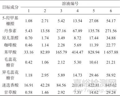 Tab. 2 Mass concentrations of 9 components in a series of mixed reference solutions ( μg/mL )