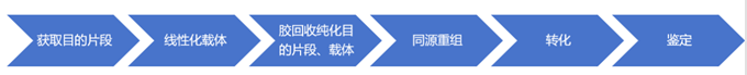 (1)引物設計:在插入片段正反向擴增引物的5’端引入線性化載體兩末端同源序列,使擴增后的插入片段5'和3'最末端分別帶有和線性化克隆載體兩末端對應一致的同源序列,長度一般為15-20bp,不包括酶切位點。