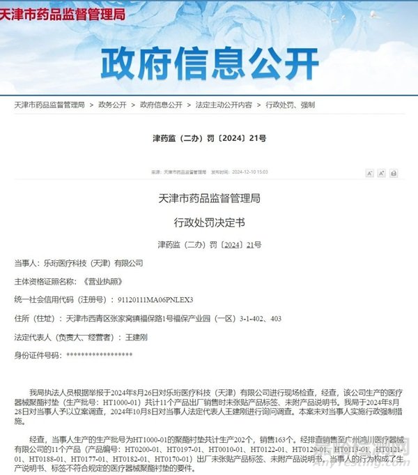 昨日,天津市藥品監(jiān)督管理局公布了一例反面教材——某某醫(yī)療科技(天津)有限公司銷售的械聚酯襯墊(屬于一類醫(yī)療器械)未張貼產(chǎn)品標(biāo)簽、未附產(chǎn)品說(shuō)明書(shū),被開(kāi)出了處罰決定書(shū)。具體案情,見(jiàn)文末。