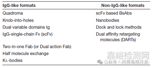 為實(shí)現(xiàn)雙抗的多功能,其結(jié)構(gòu)也是多種多樣,如下表所示,有IgG樣,也有非IgG類型的。