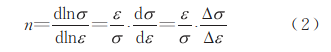 (2)對于瞬時n值,假定在一微小應變區(qū)間內,真應力與真應變滿足式(1)所示的關系。
