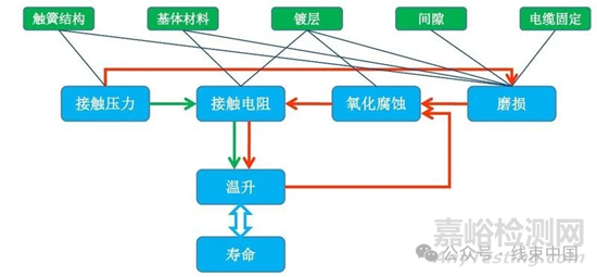 接觸電阻的影響因素包括接觸面的形狀、材料、壓力和溫度等。接觸面不平整會(huì)導(dǎo)致接觸面積變小,電阻增加;不同材料的接觸面電阻不同;壓力增大可降低接觸電阻;溫度升高會(huì)使接觸電阻增大。實(shí)際觸點(diǎn)接觸電阻的獲取方法主要是試驗(yàn)測試,如接觸電阻測試中,施加一定電流通過連接器,然后測量接觸點(diǎn)之間的電壓差,根據(jù)歐姆定律計(jì)算出接觸電阻。
