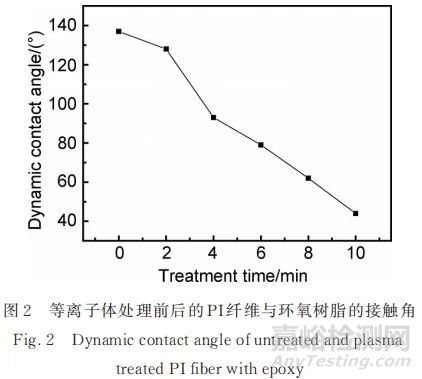 2.2 等離子體表面處理對PI纖維與環氧樹脂浸潤效果的影響
