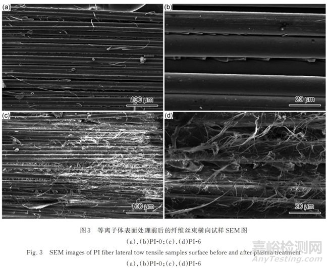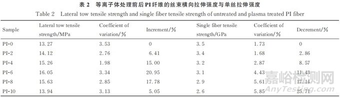 2.3 等離子體表面處理對纖維/樹脂界面結合強度及PI纖維本體性能的影響