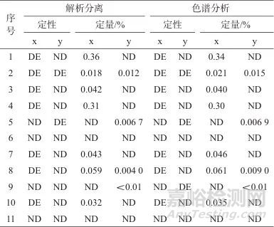 注:<0.01%是能檢出但低于定量限;DE是檢出;ND是未檢出